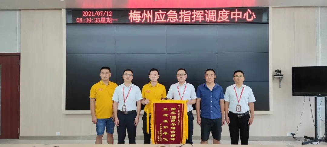 活动当天,各传输枢纽值守、干线盯防、仪表、车辆、应急物资全部到位,除落实安全人员24小时值班机制外,公司还部署实施了态势感知、应急响应、持续安全评估、安全监测巡检等措施,实现重保期间网络安全零事故。为此,金沙js93252公司通服被中国联通梅州市分公司授予“建党100周年通信保障先进维护单位”的荣誉锦旗。